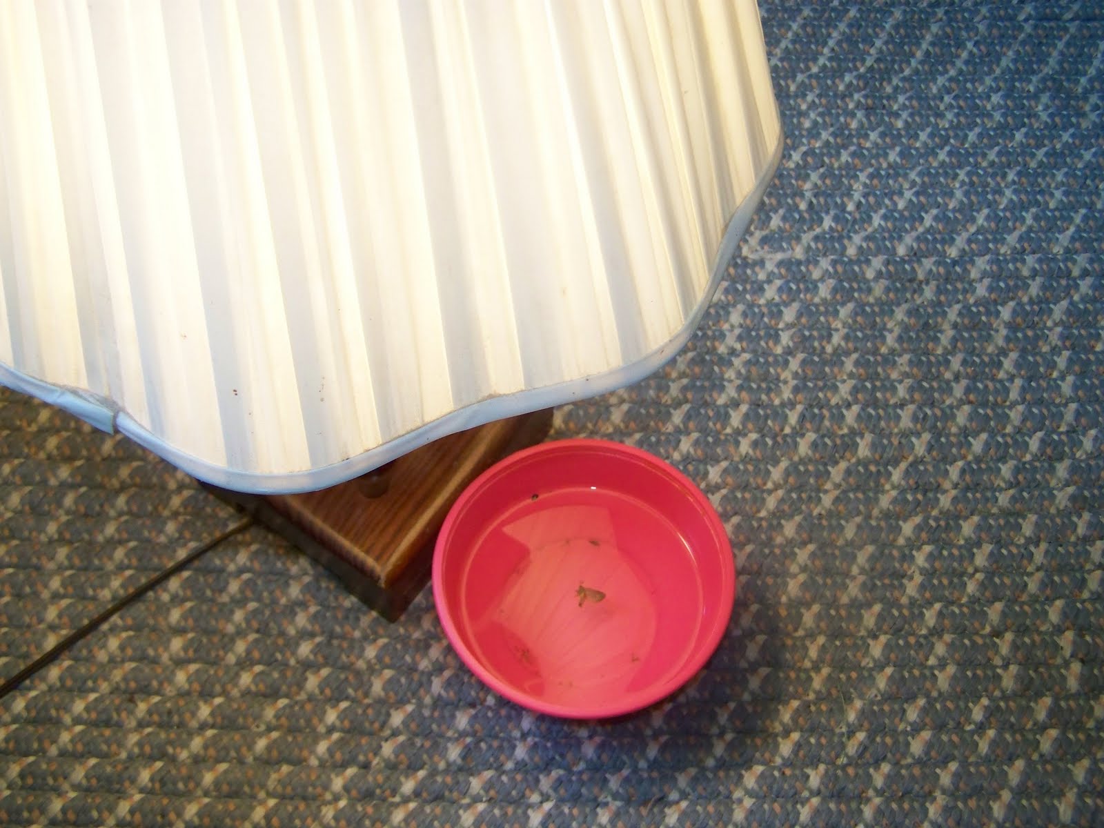 I put warm water and dish soap in a bowl on the floor, and placed a lamp next to it. Fleas are attracted to light. When they jump towards the light, they land in the bowl and drown. This morning, I found several fleas (and a few other insects) in the bowl. While this method will not get all the fleas, it took care of several that would have been biting us this morning! I’m keeping this lamp on and putting fresh warm water and dish soap from time to time to drown as many of these jumping critters as I can! I’ll update you when I’ve completely conquered them, and share what else I did! I’m also going to work on ridding the animals of fleas!