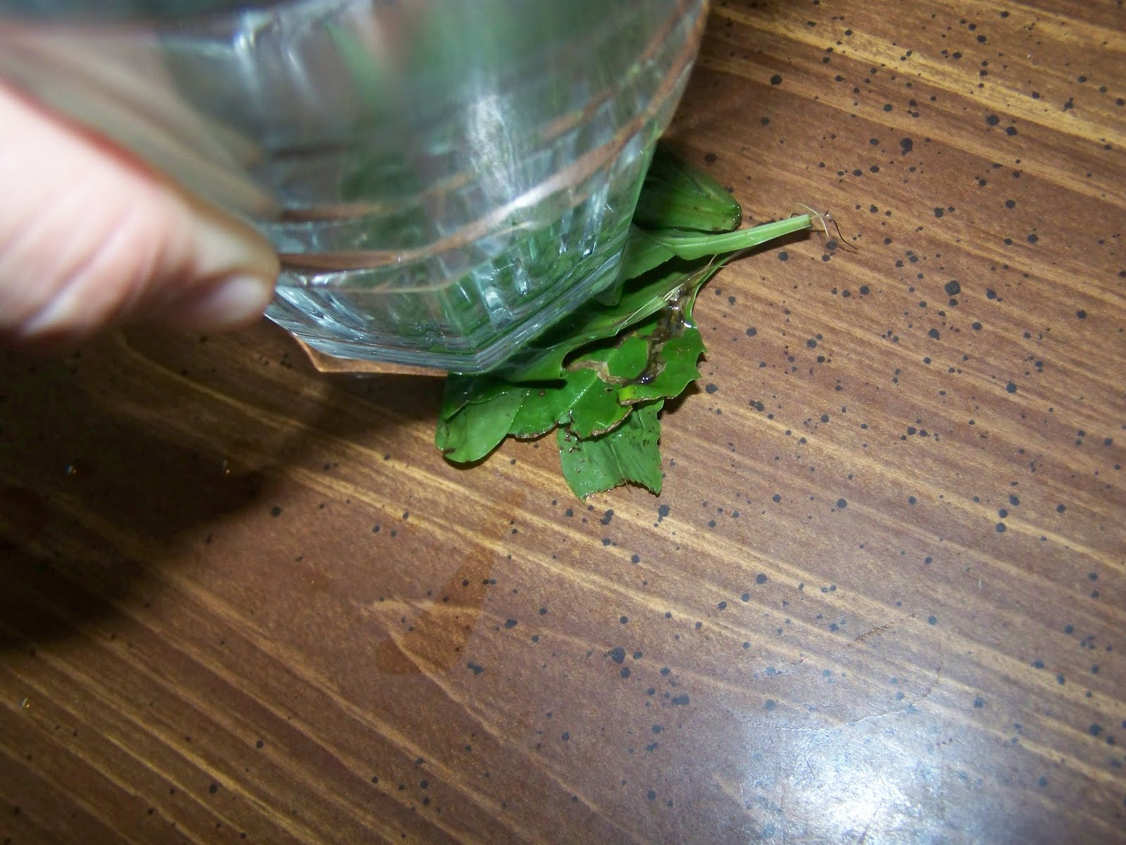 3. Next you want to be sure you “bruise” the leaves to release the powerful properties. I always crush them with the edge of a glass cup and then tear them up some. You can do several leaves at a time to make it quicker.