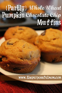 I have to try these Whole Wheat Pumpkin Chocolate Chip Muffins from The Purposeful Mom! They are on my list for next week!